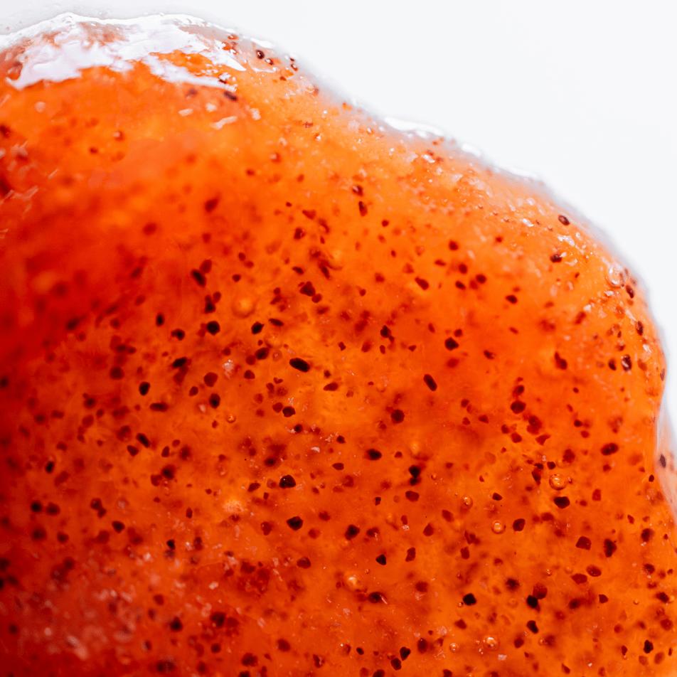 Les AHA naturels de pamplemousse rose offrent une exfoliation chimique douce et bien tolérée, tandis que les grains de pêche et d’orange upcyclés ont été sélectionnés pour leur finesse. Résultat : une peau douce, sans tiraillement.